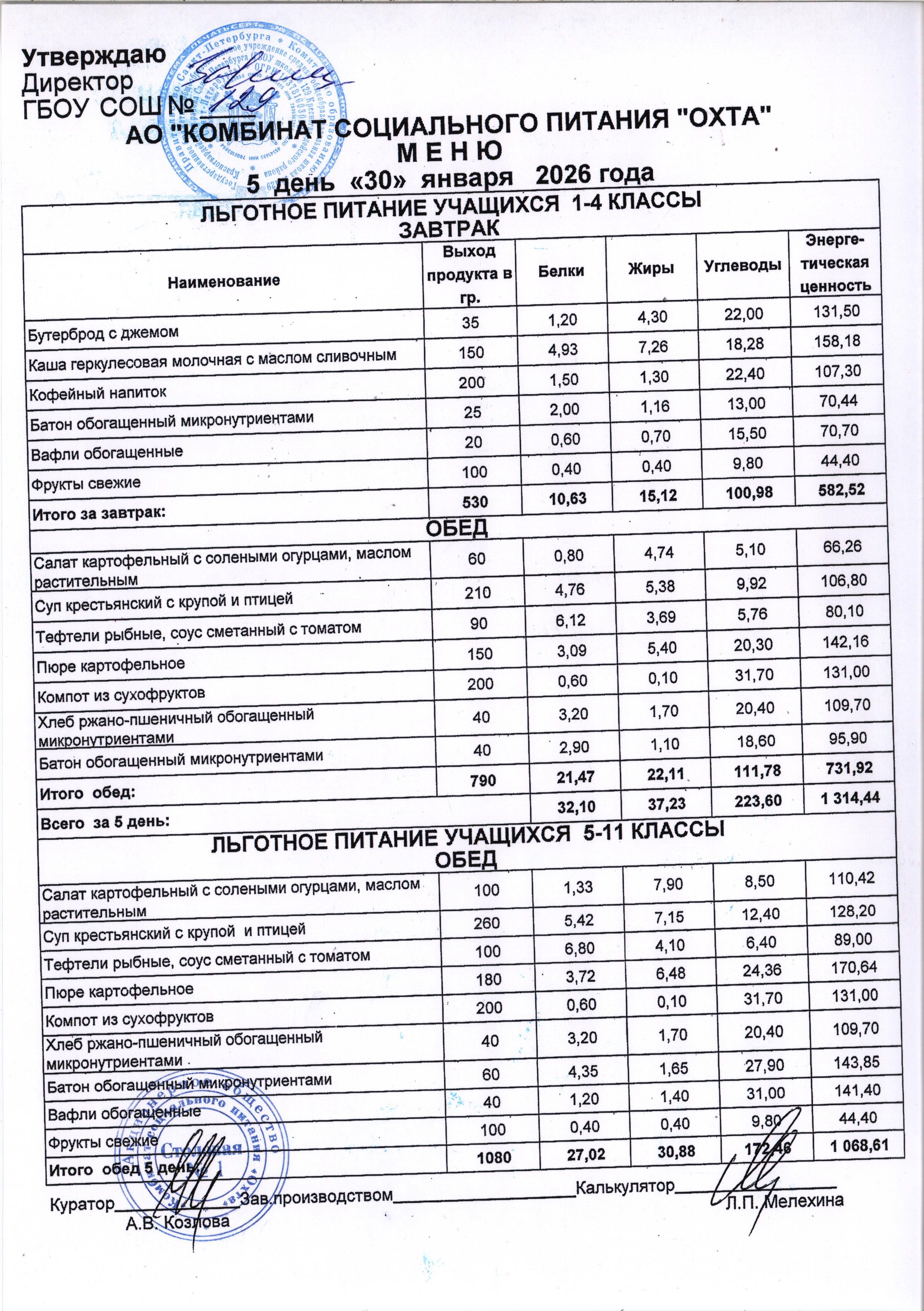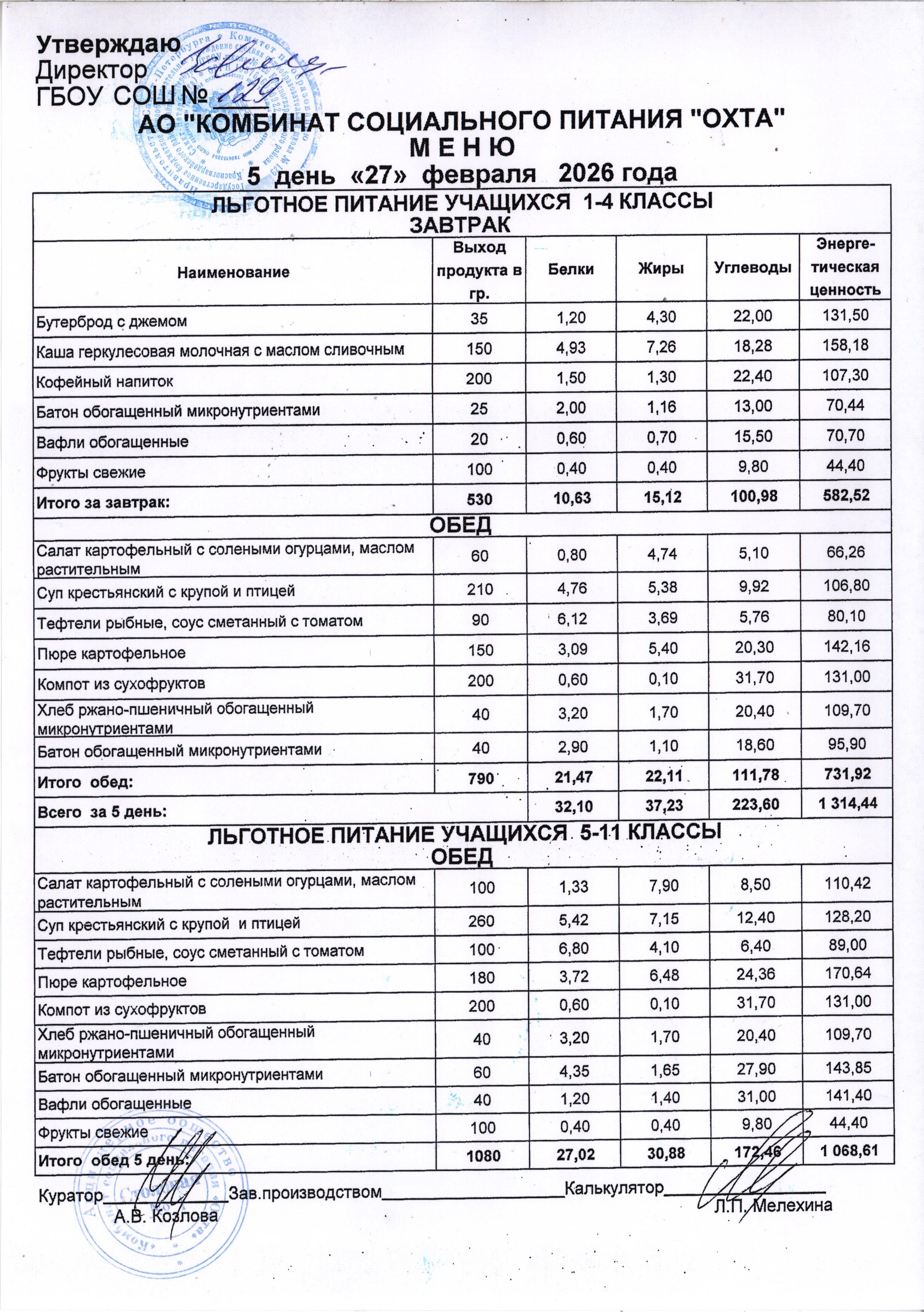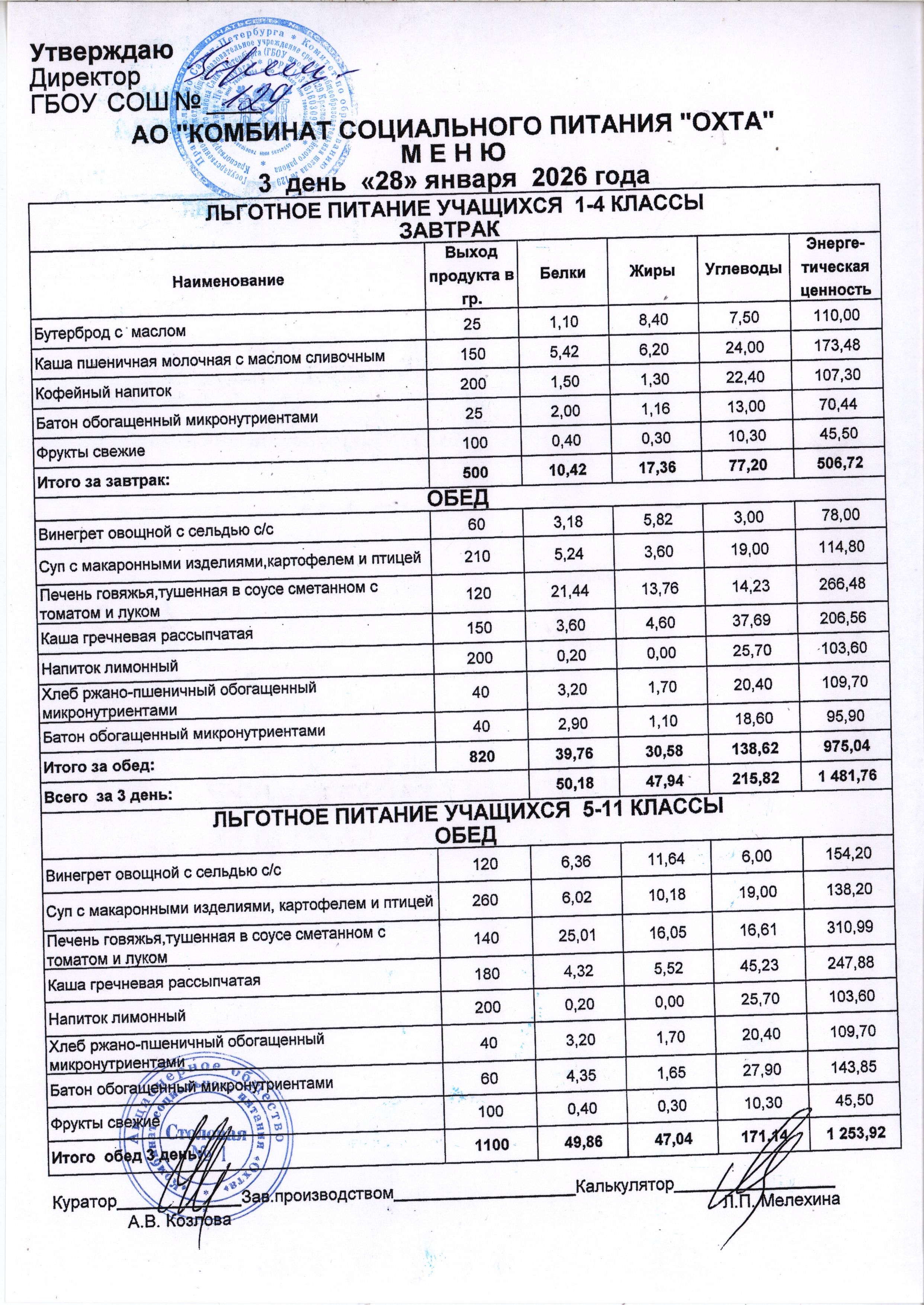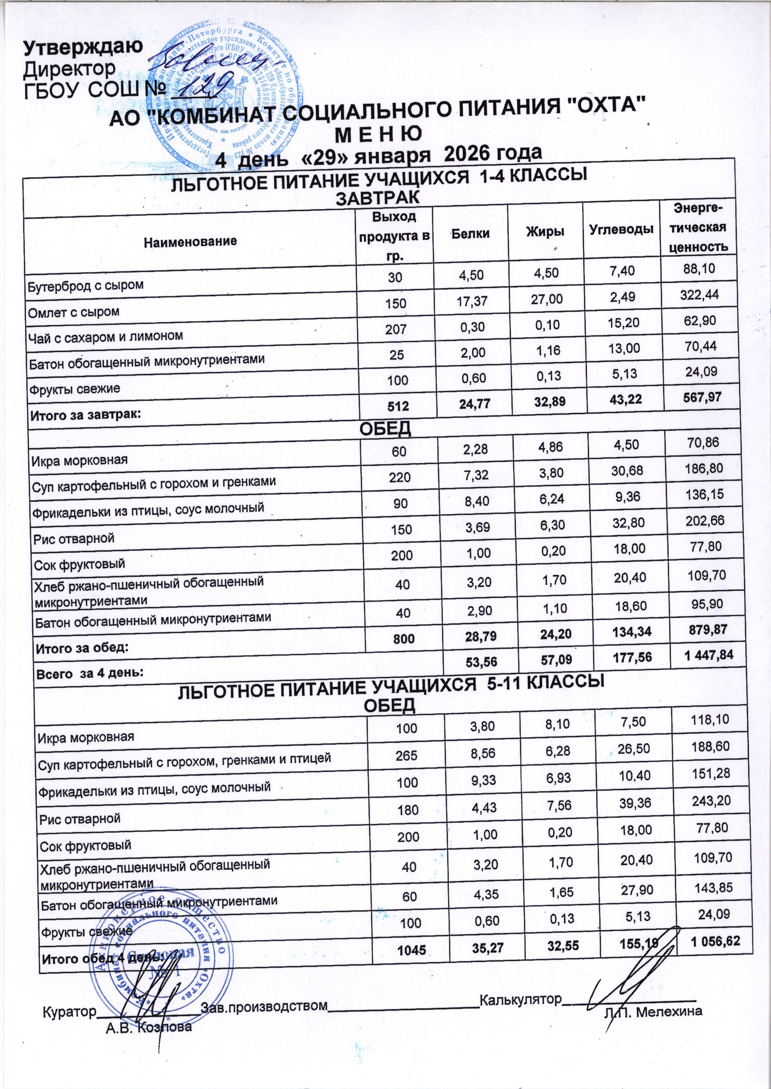 Акт проверки организации питания учащихся в ГБОУ школы №129 от 26.01.2024