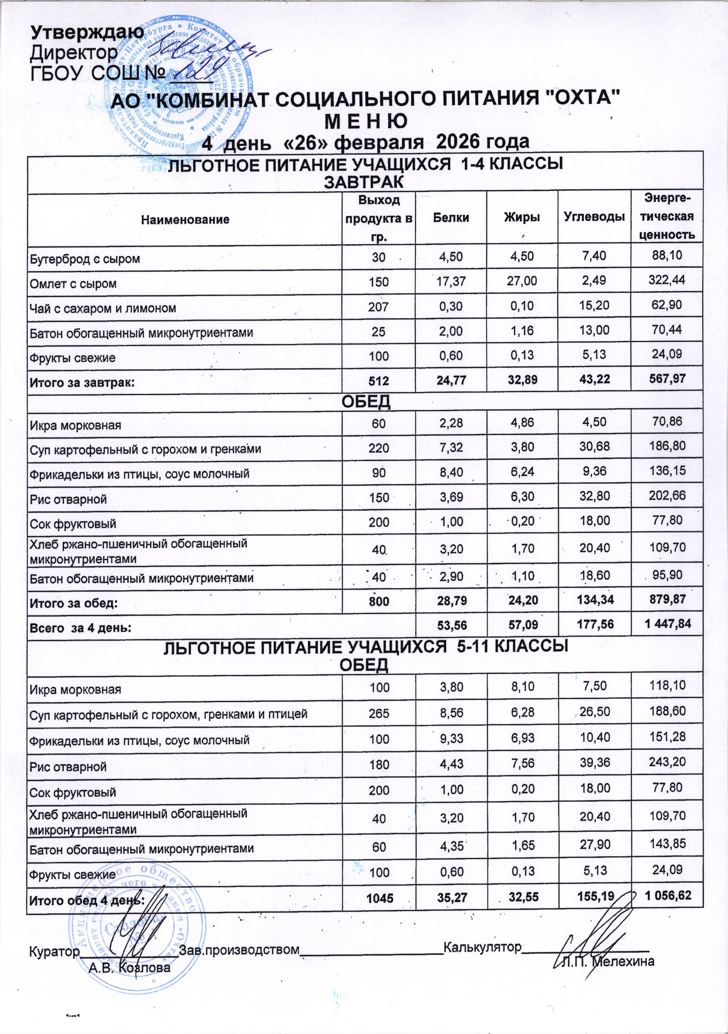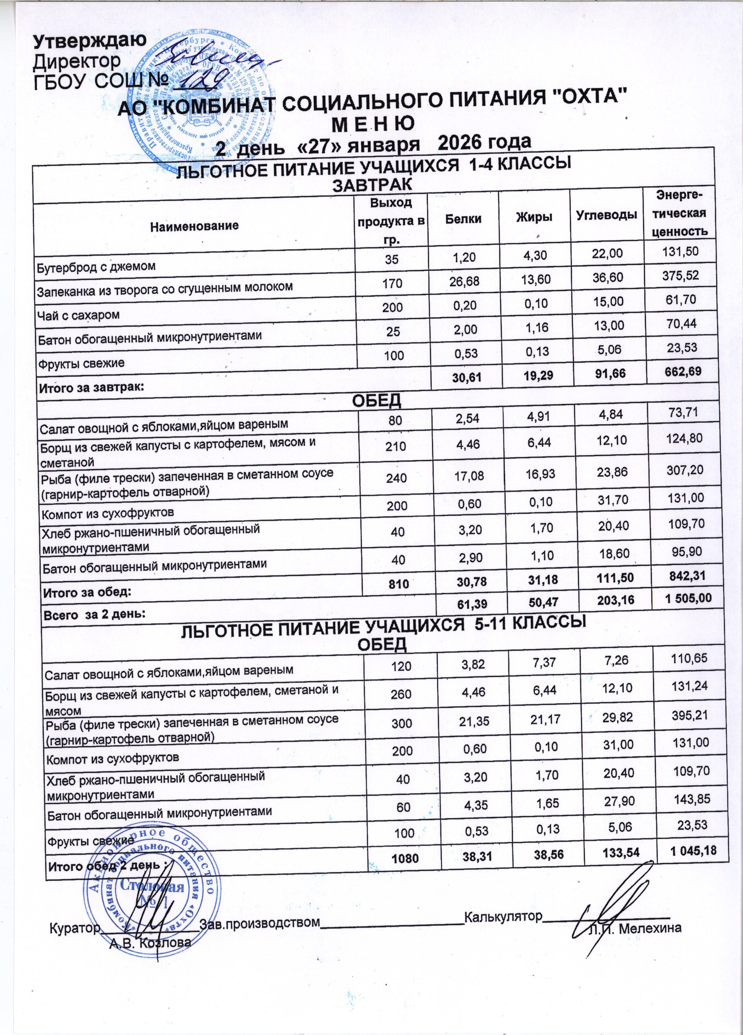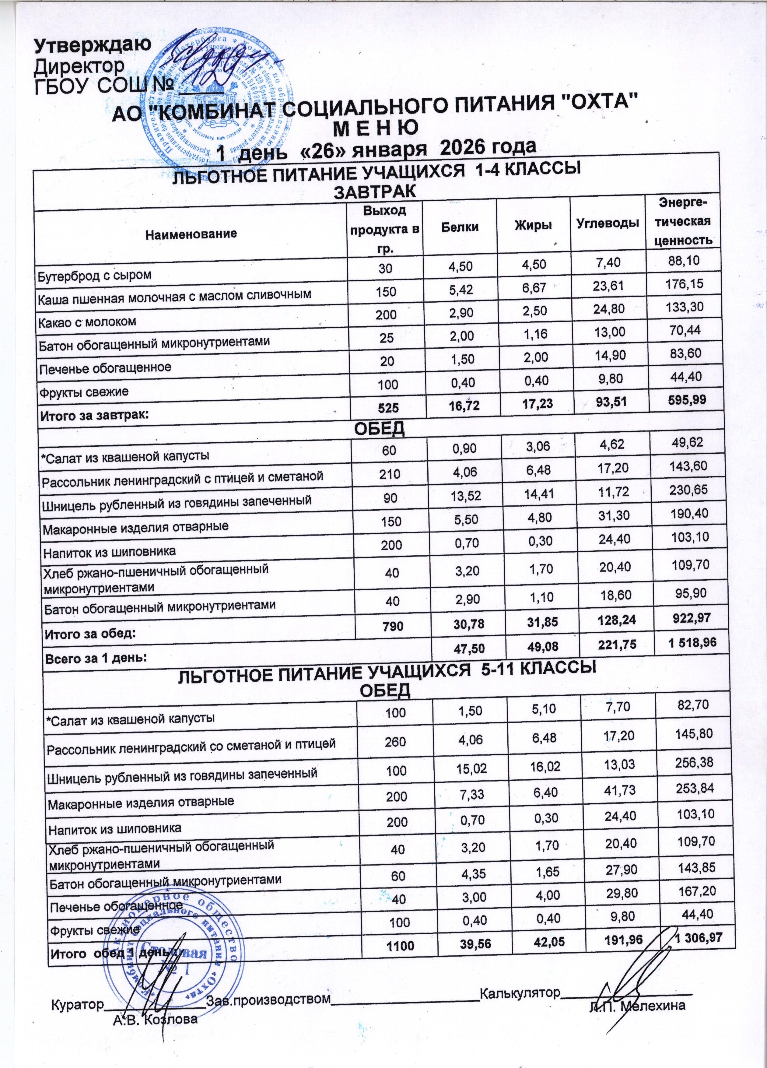 Акт проверки организации питания учащихся в ГБОУ школы №129 от 26.01.2024