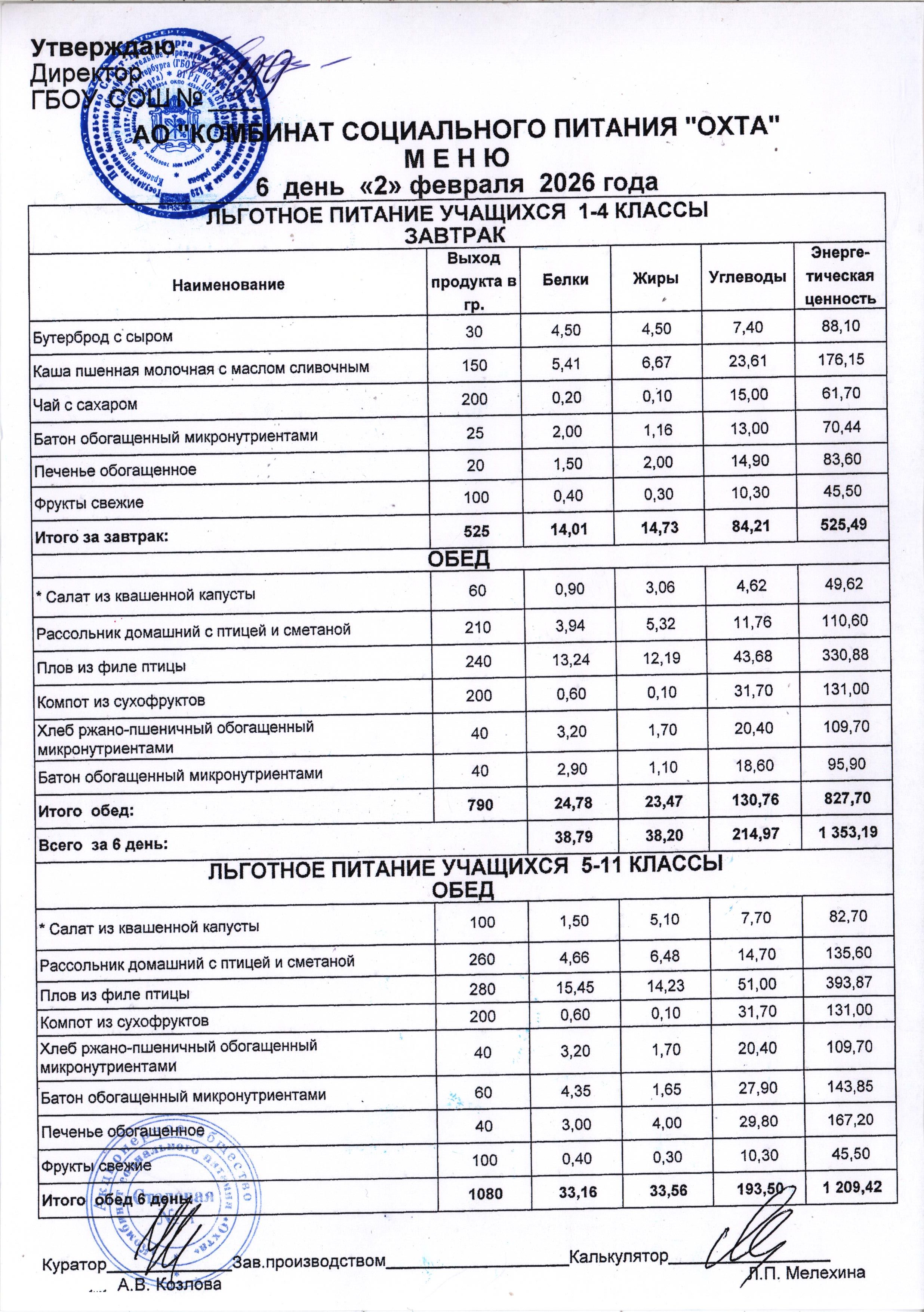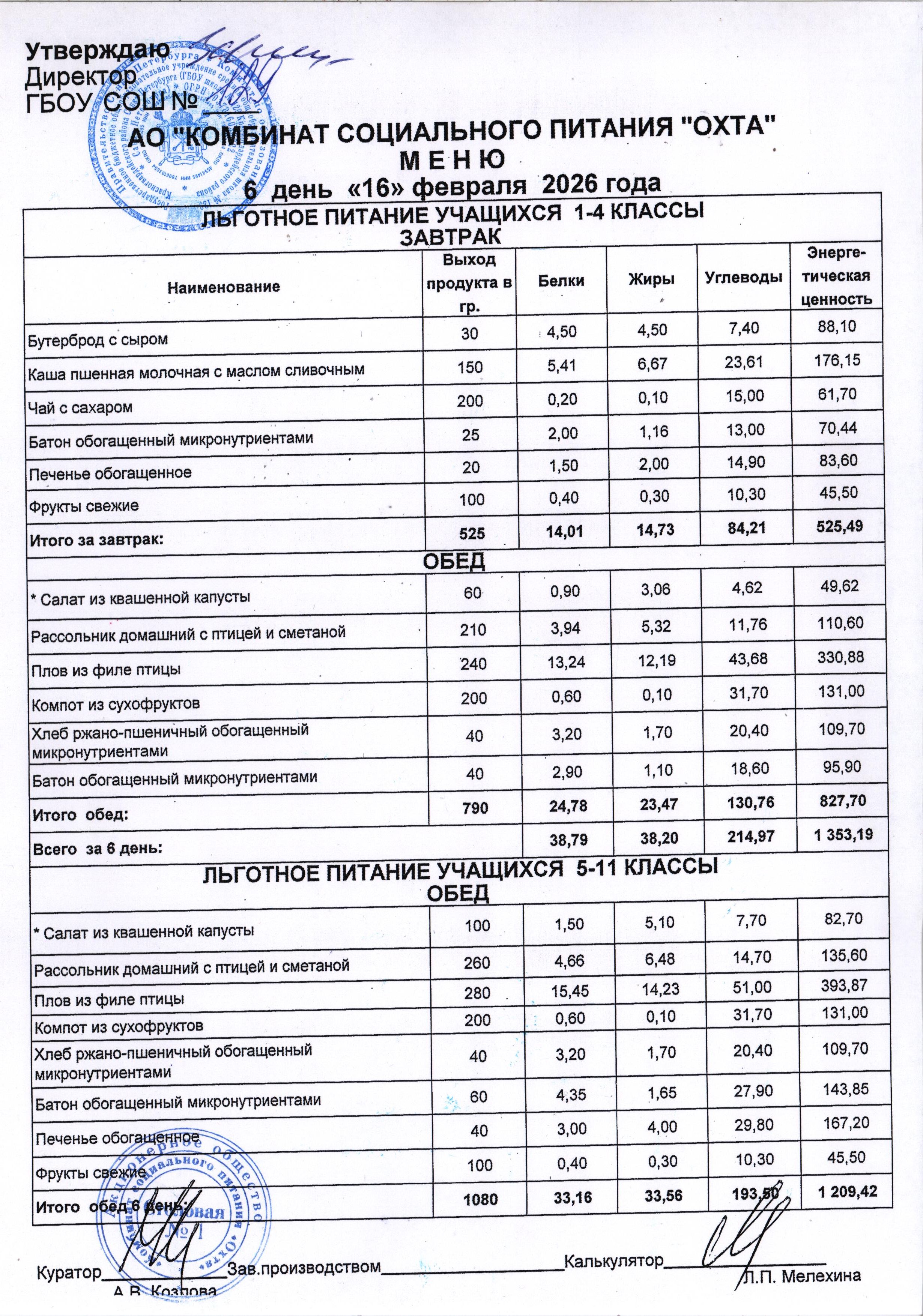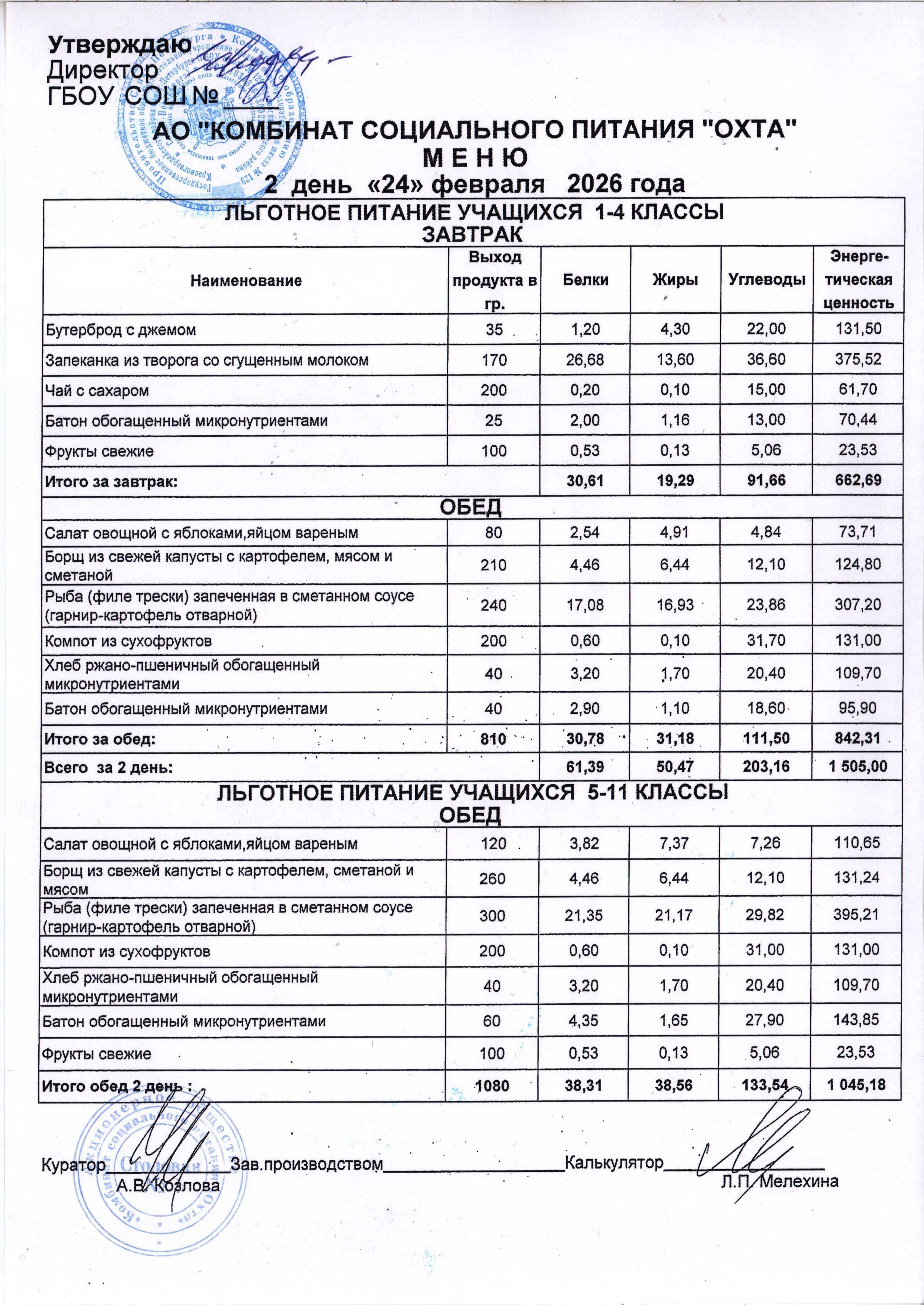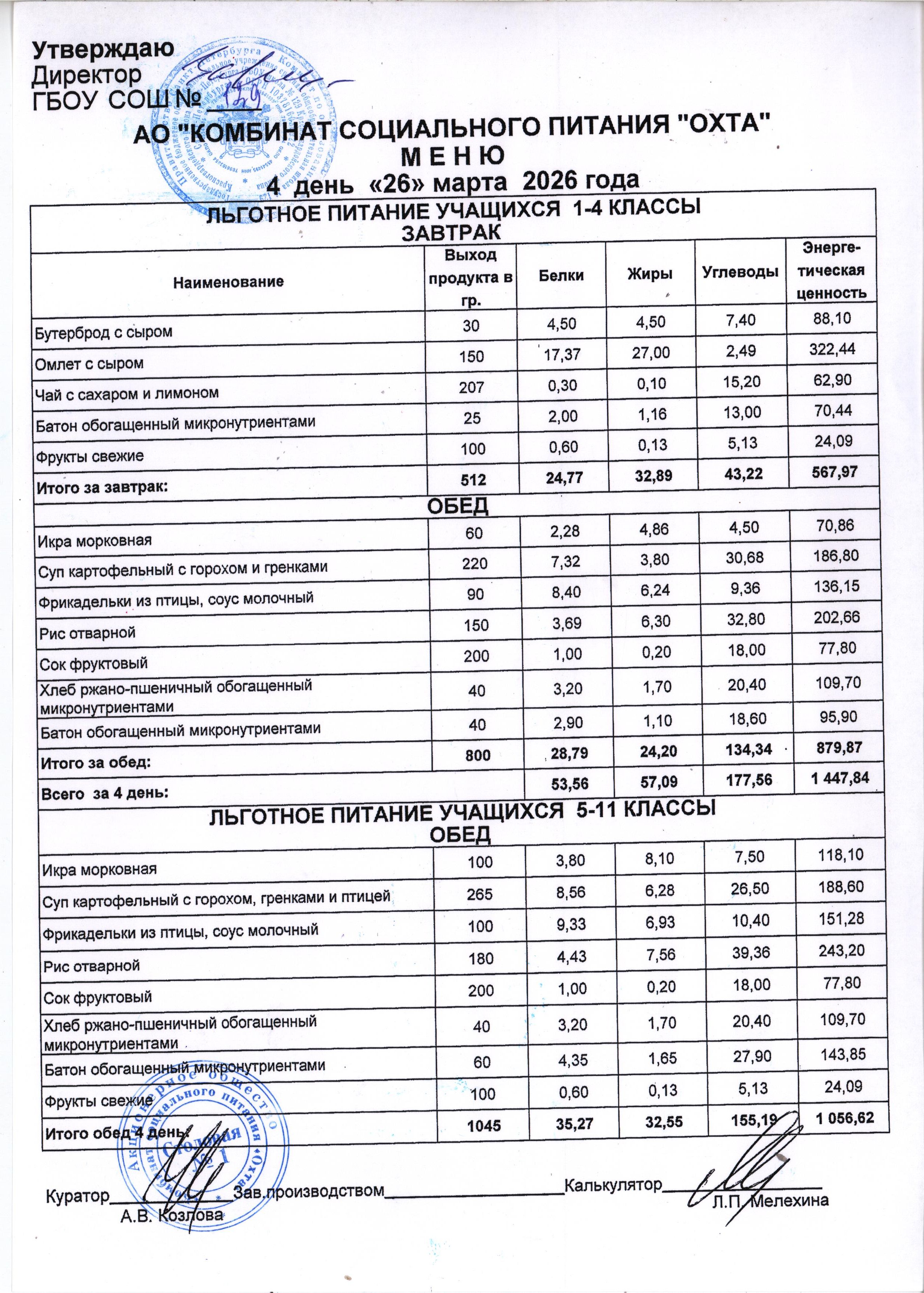 Акт проверки организации питания учащихся в ГБОУ школы №129 от 26.01.2024