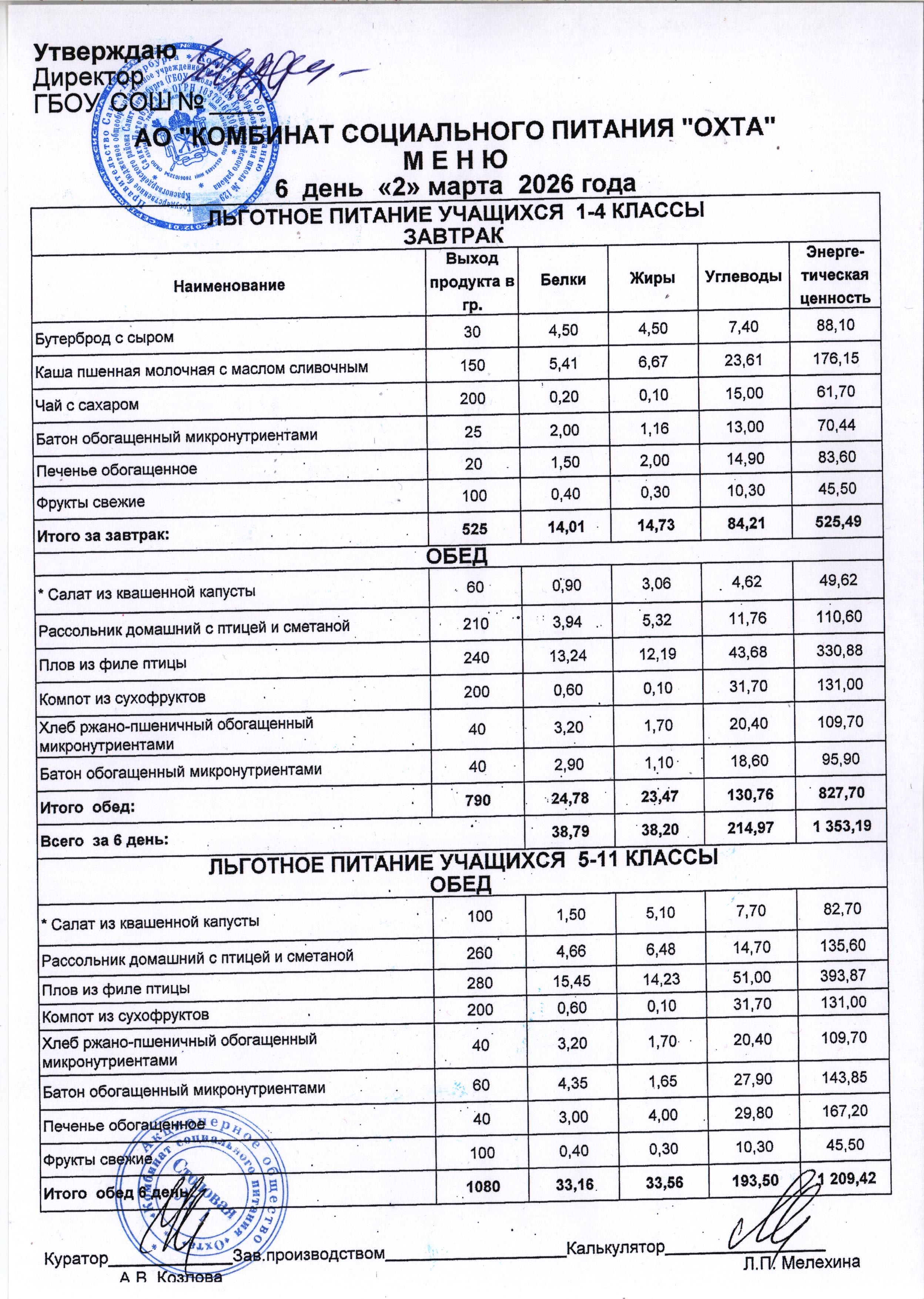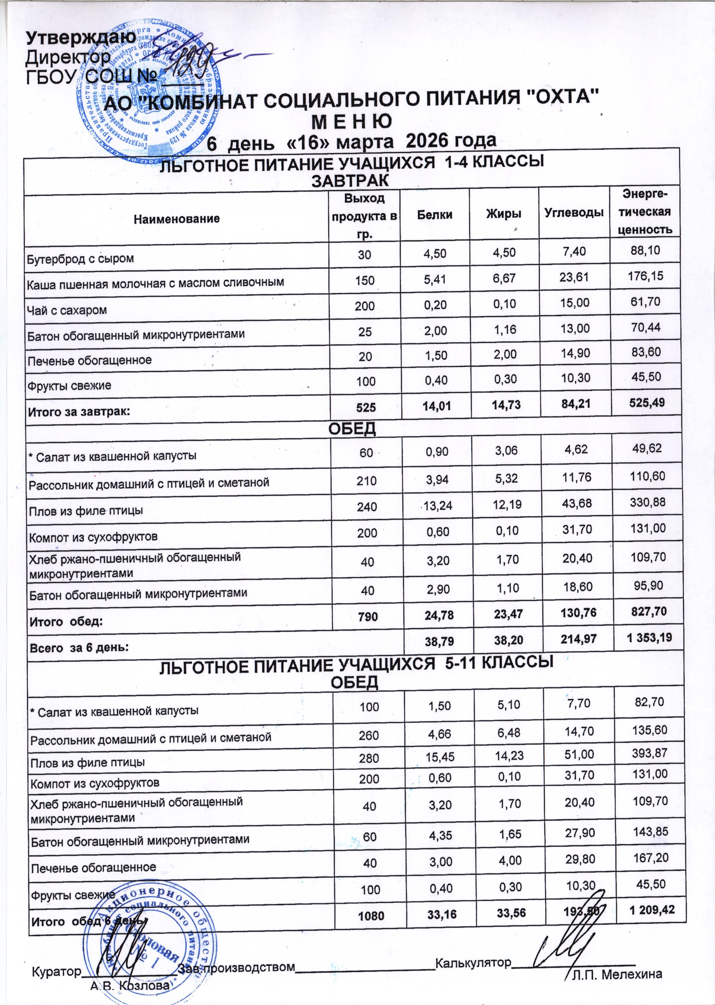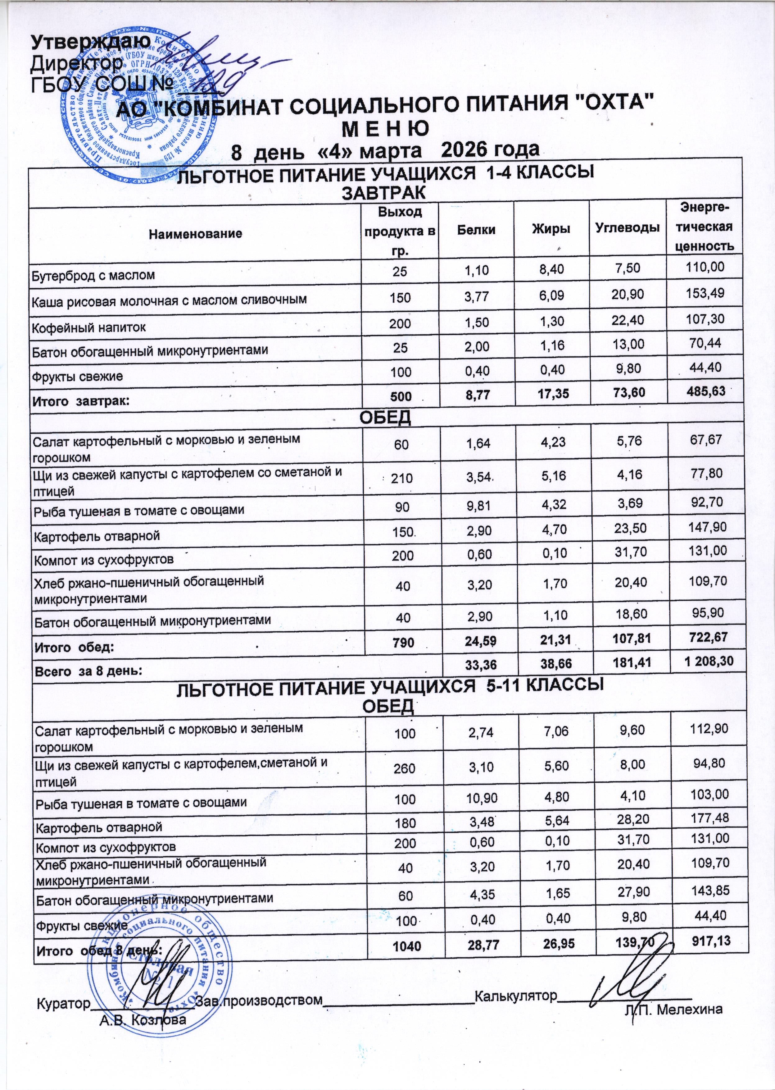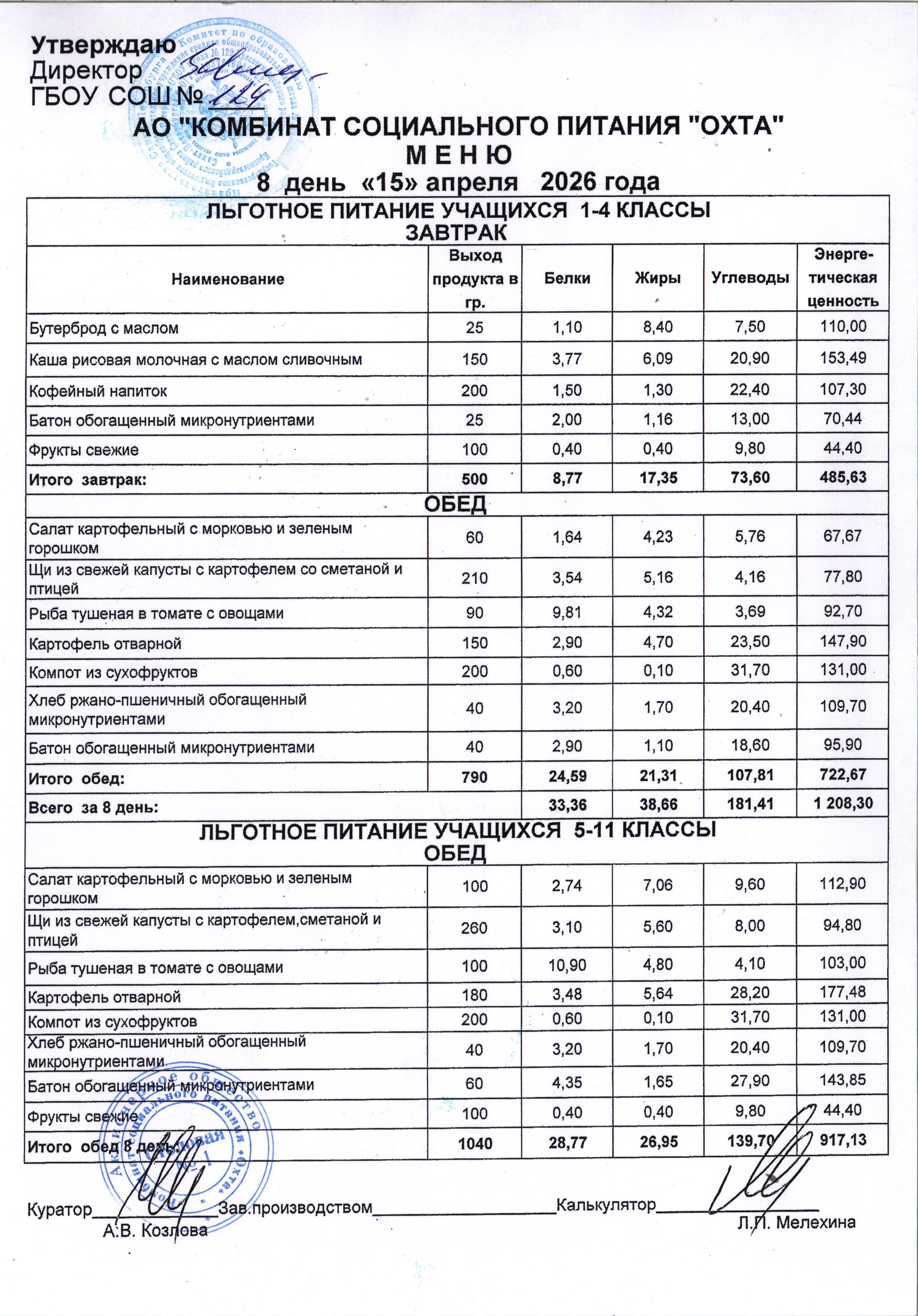 Акт проверки организации питания учащихся в ГБОУ школы №129 от 15.11.2024