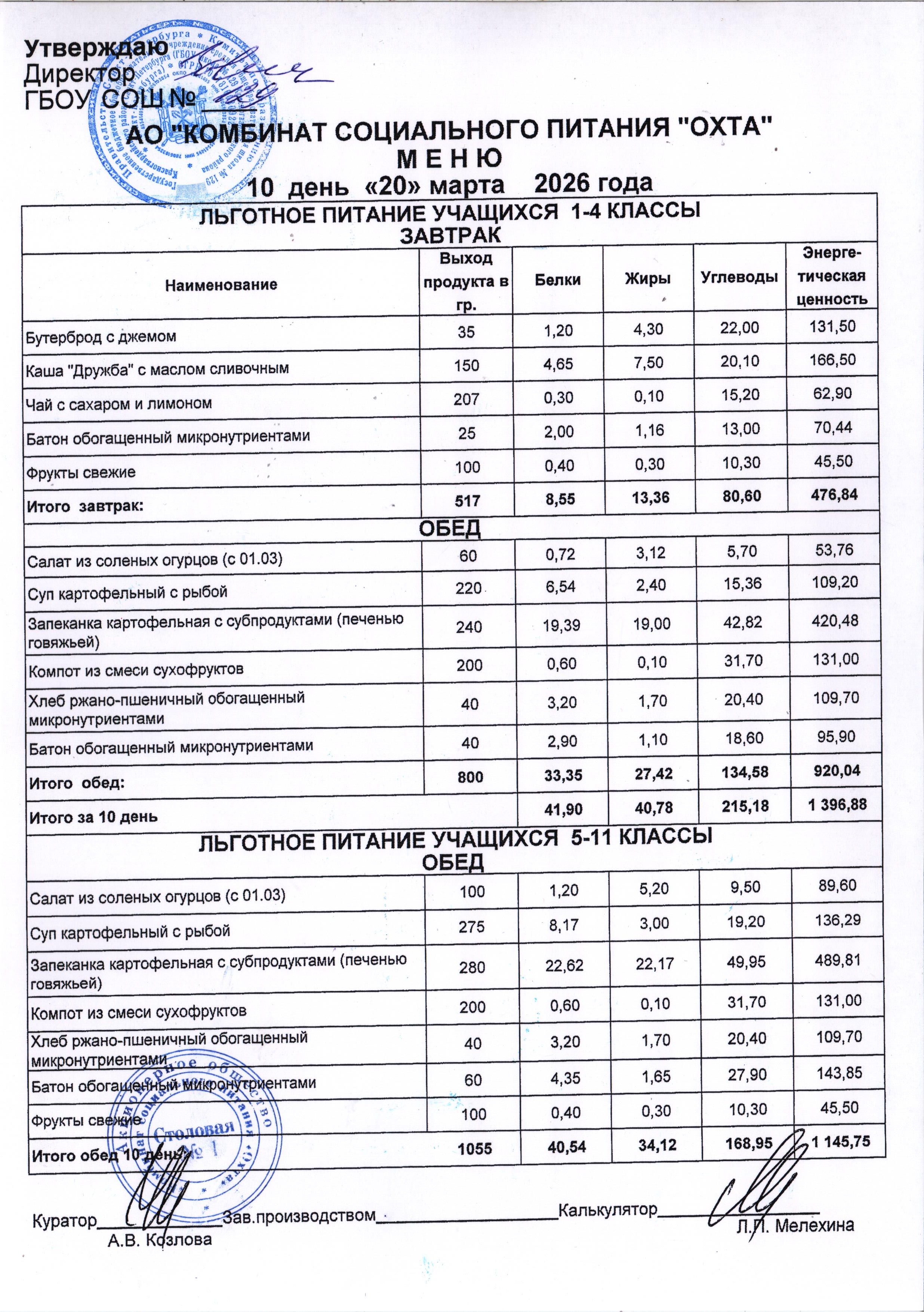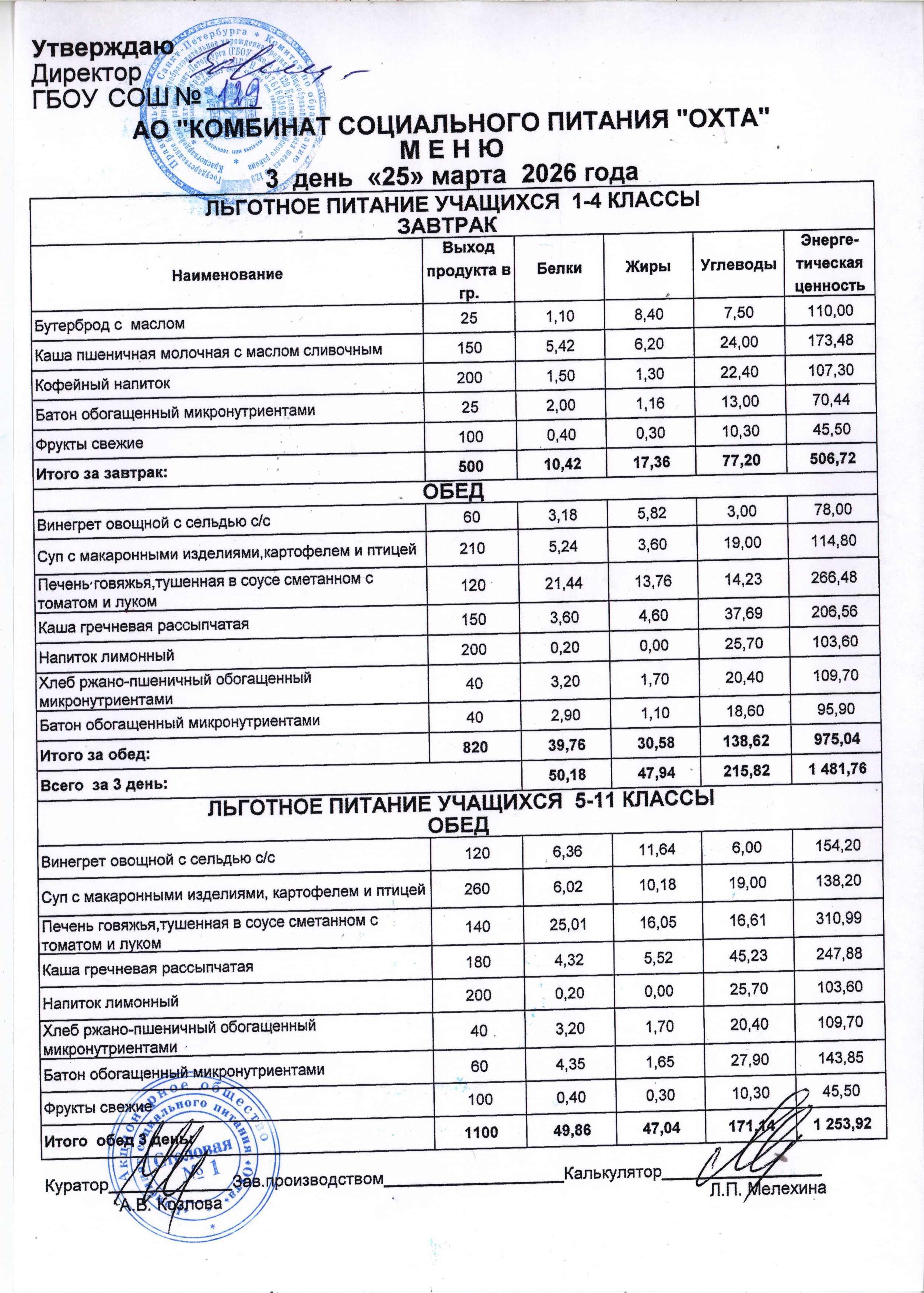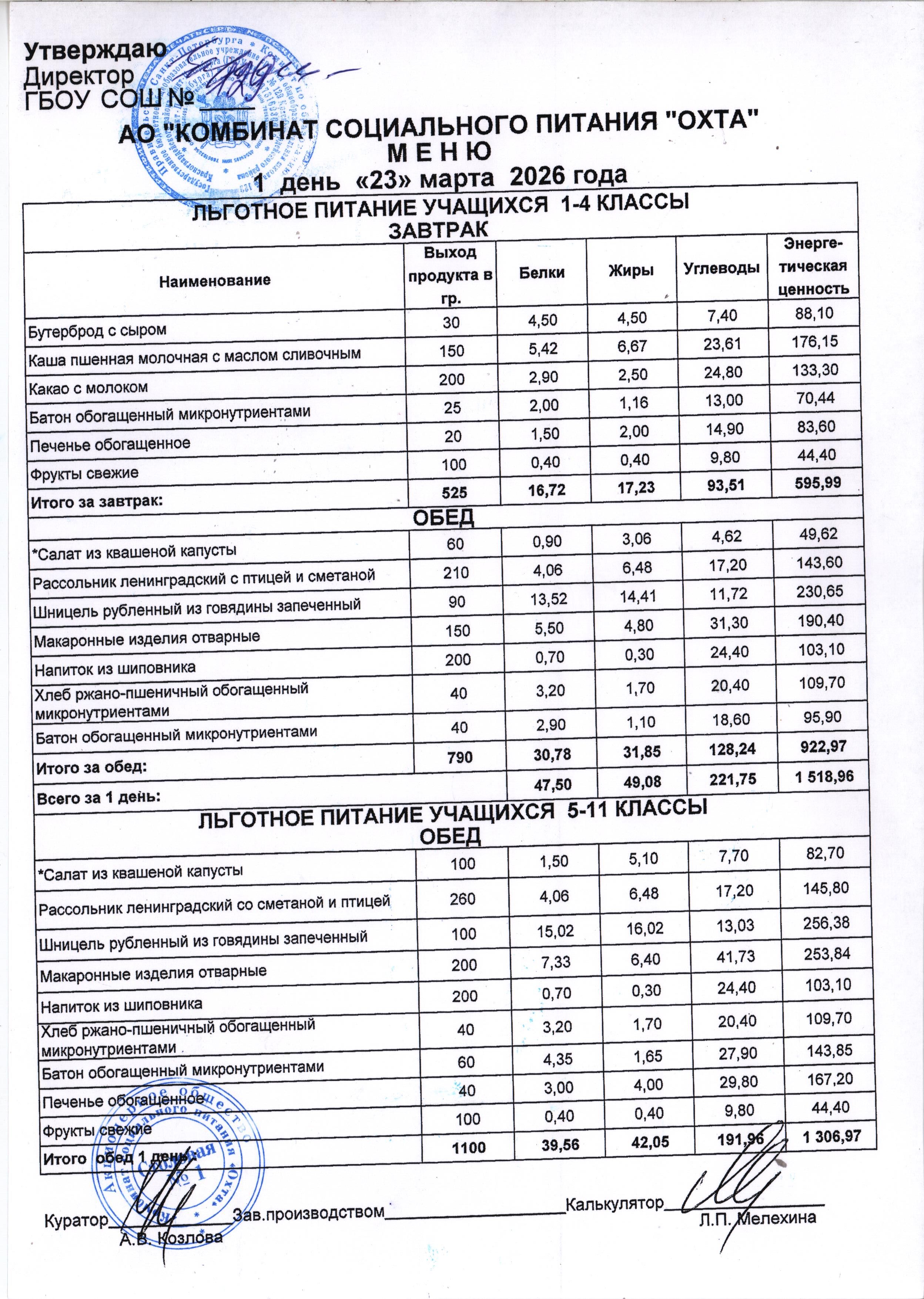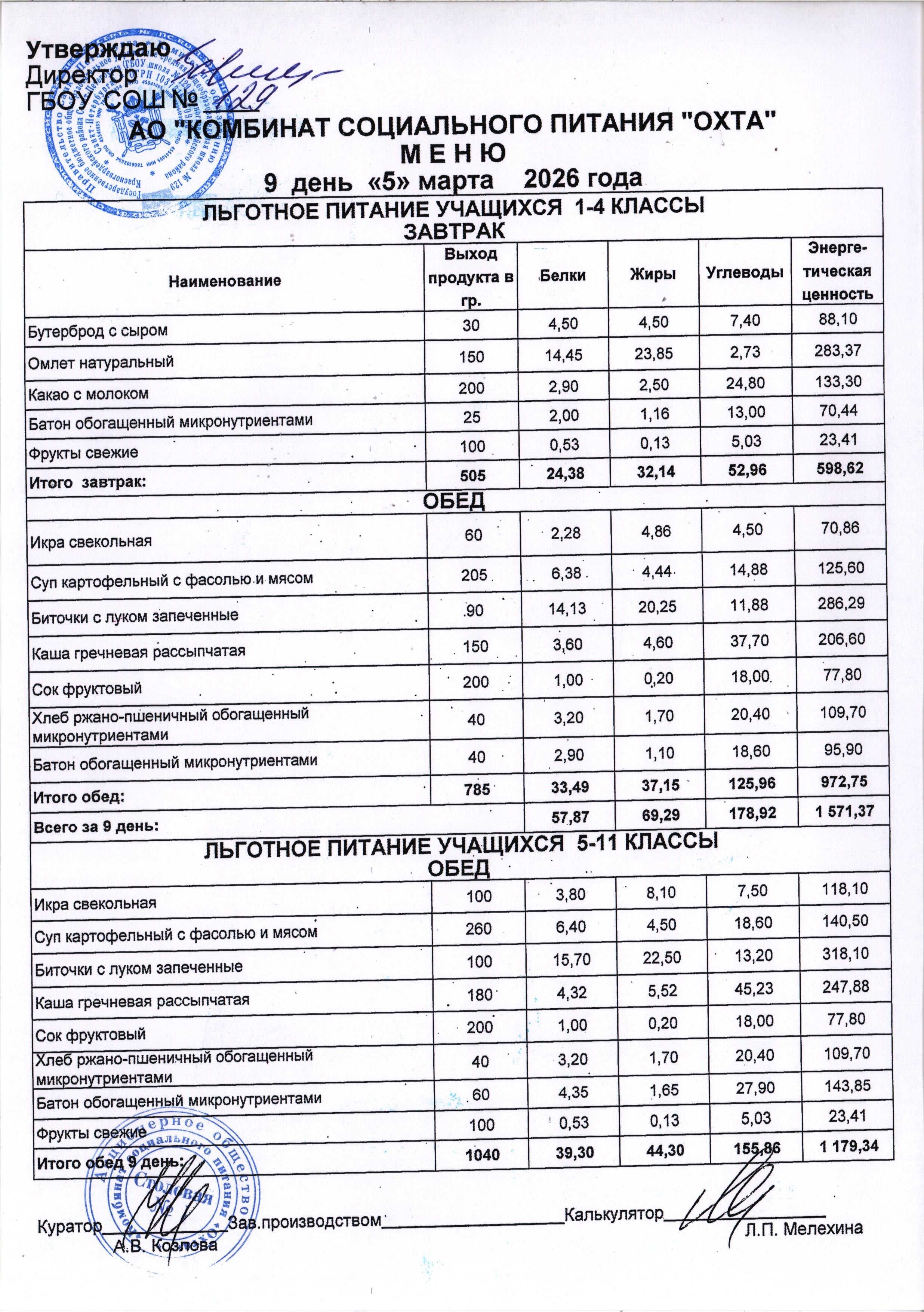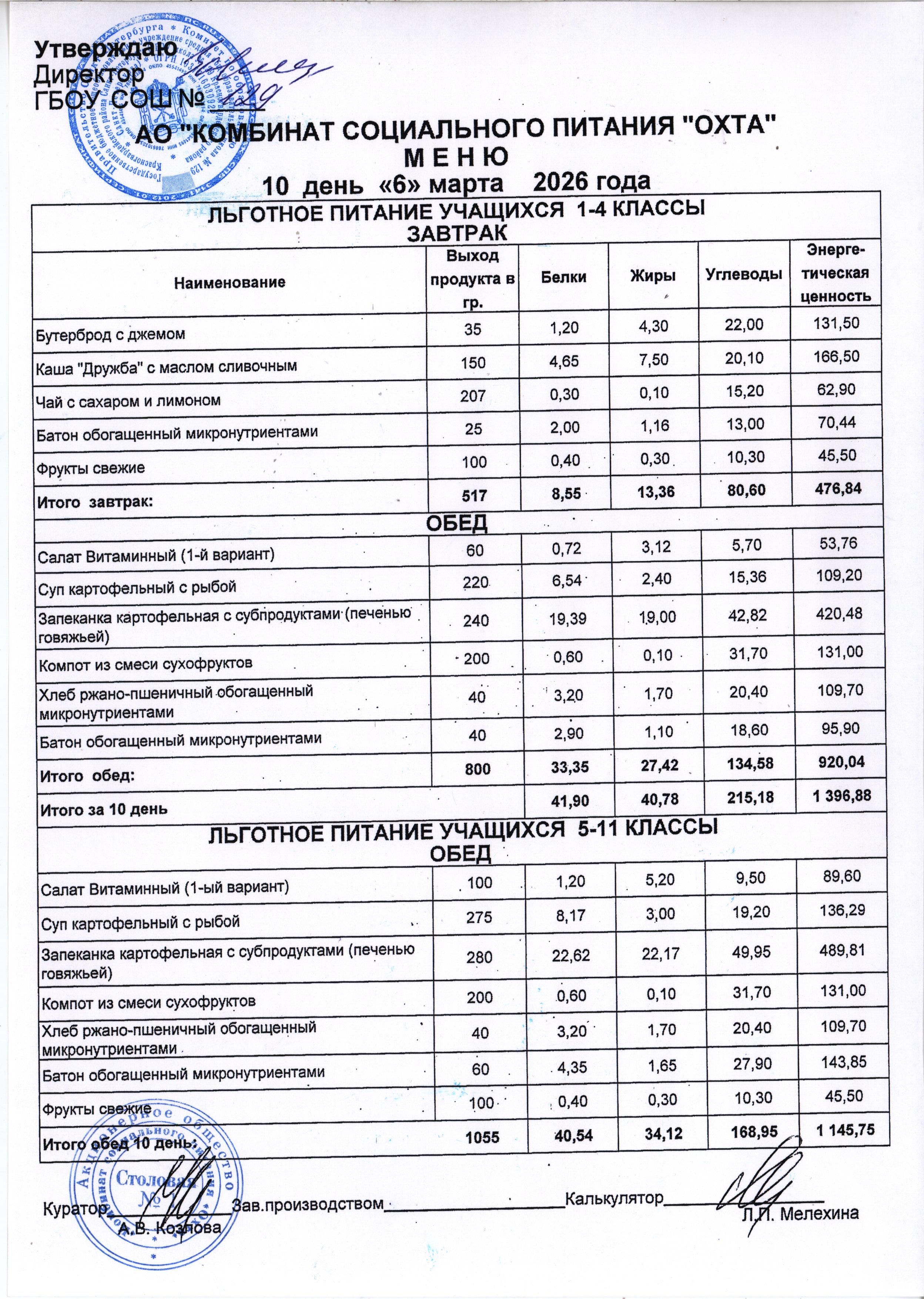 Акт проверки организации питания учащихся в ГБОУ школы №129 от 25.10.2023