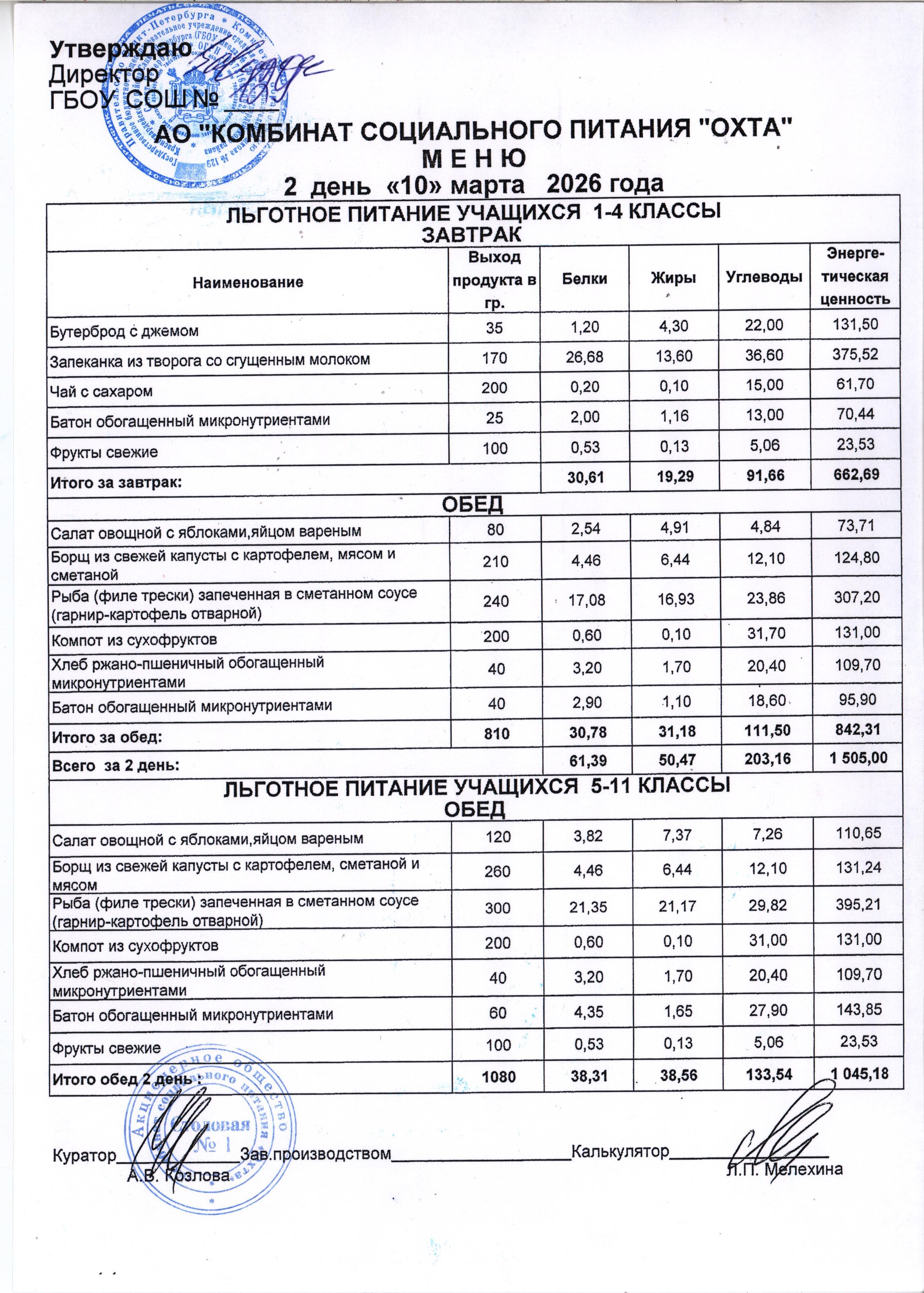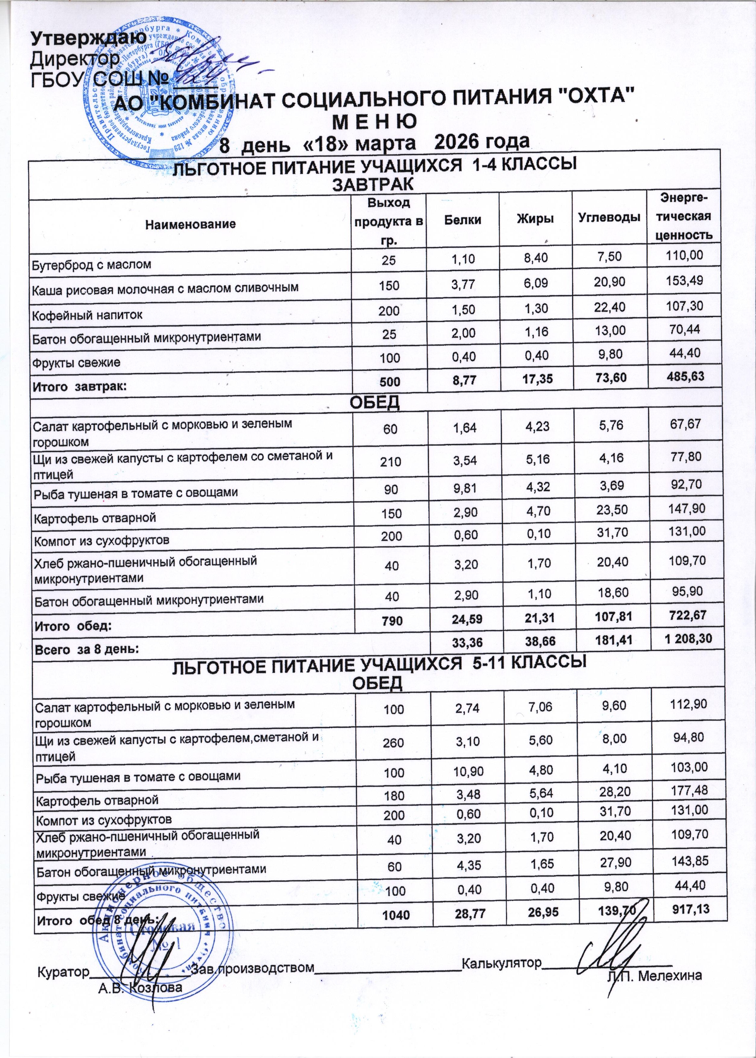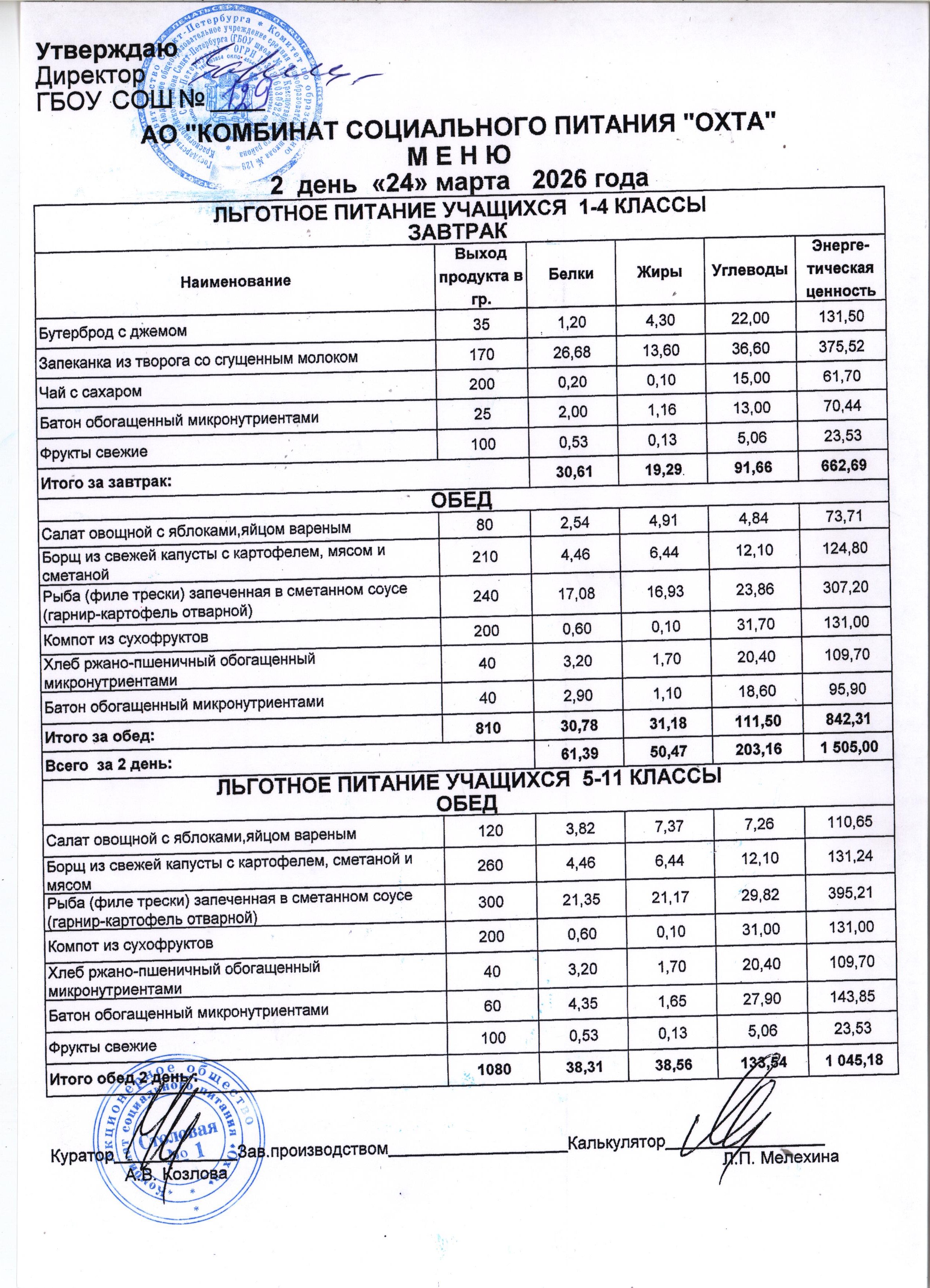 Акт проверки организации питания учащихся в ГБОУ школы №129 от 18.03.2024