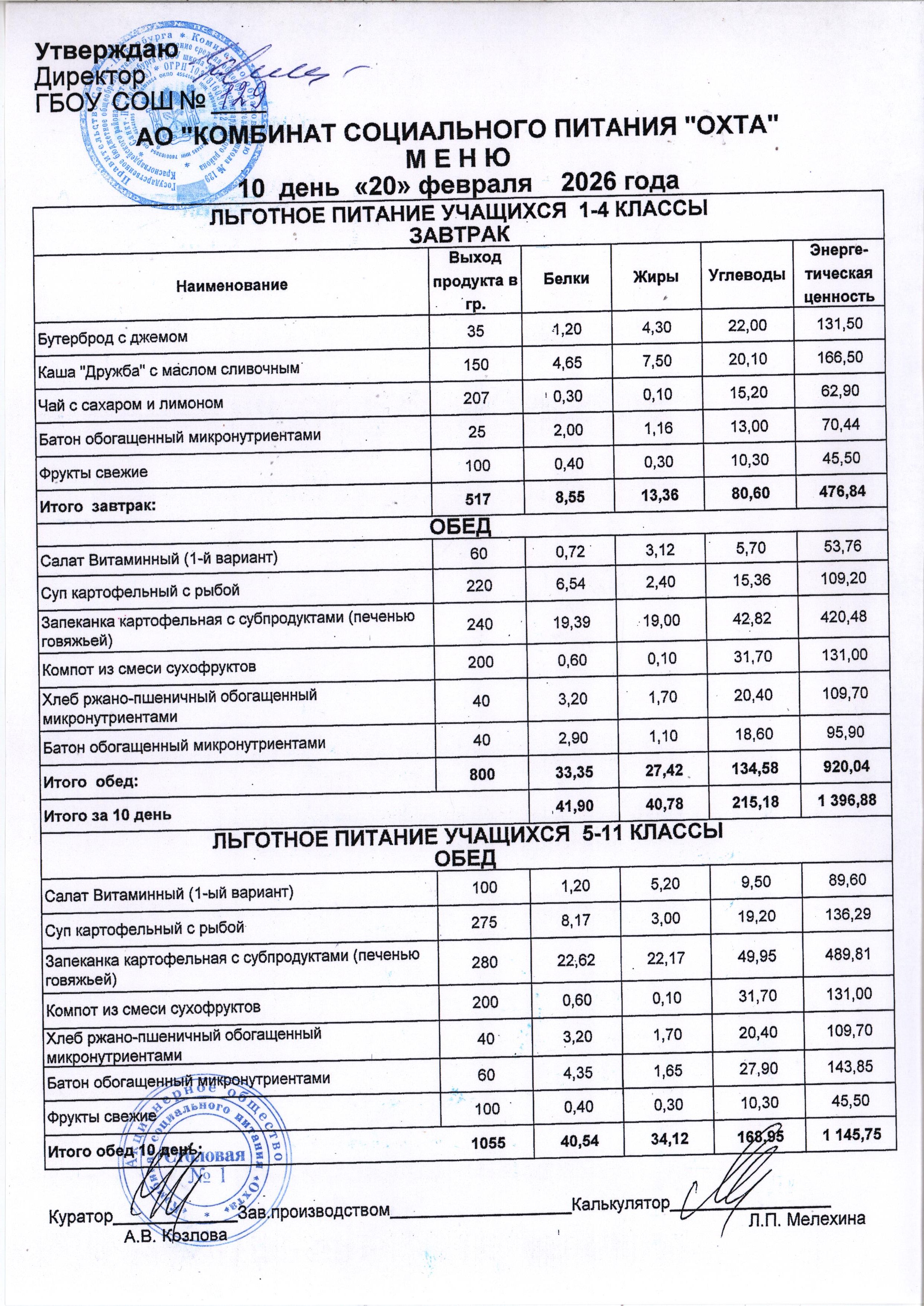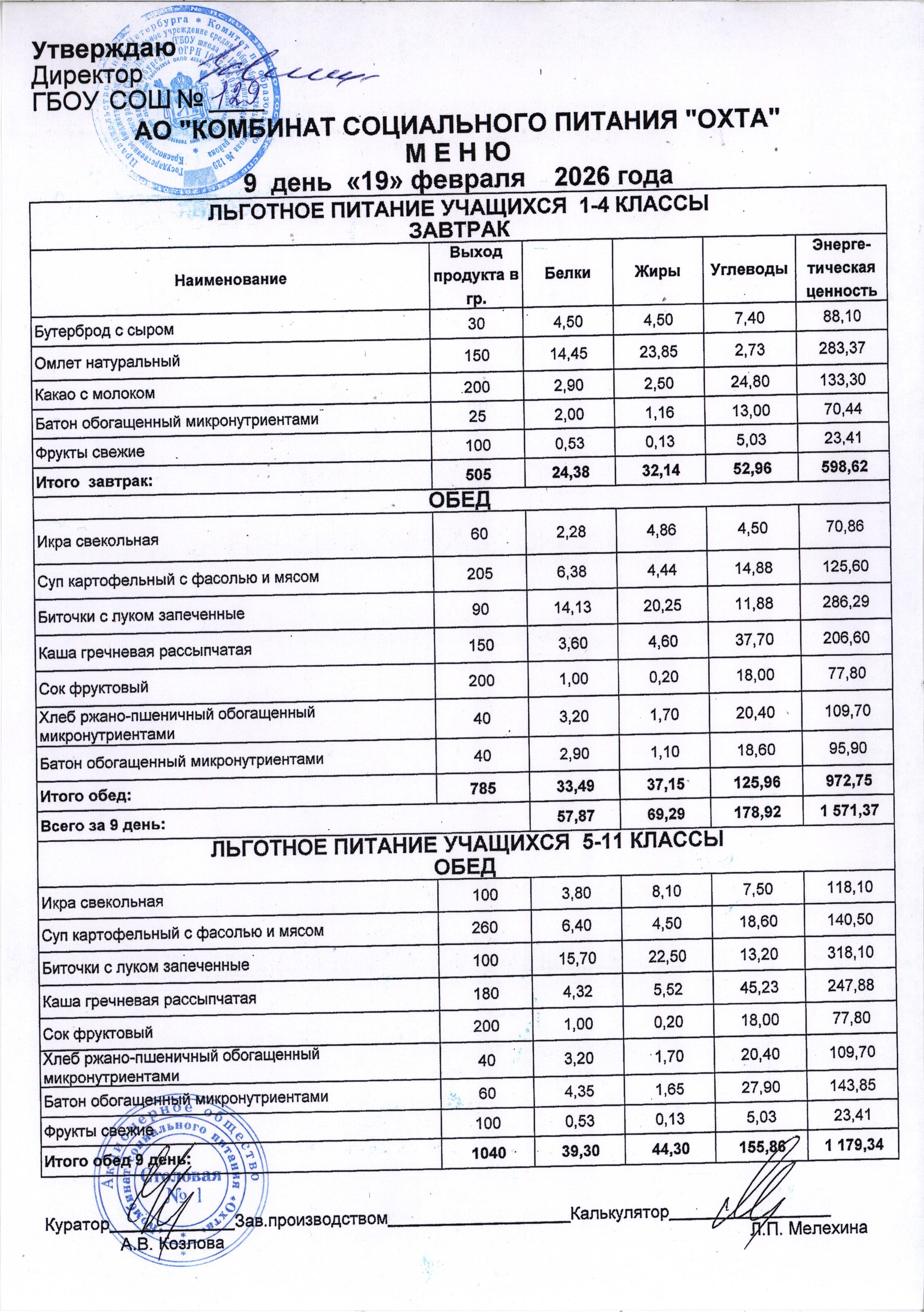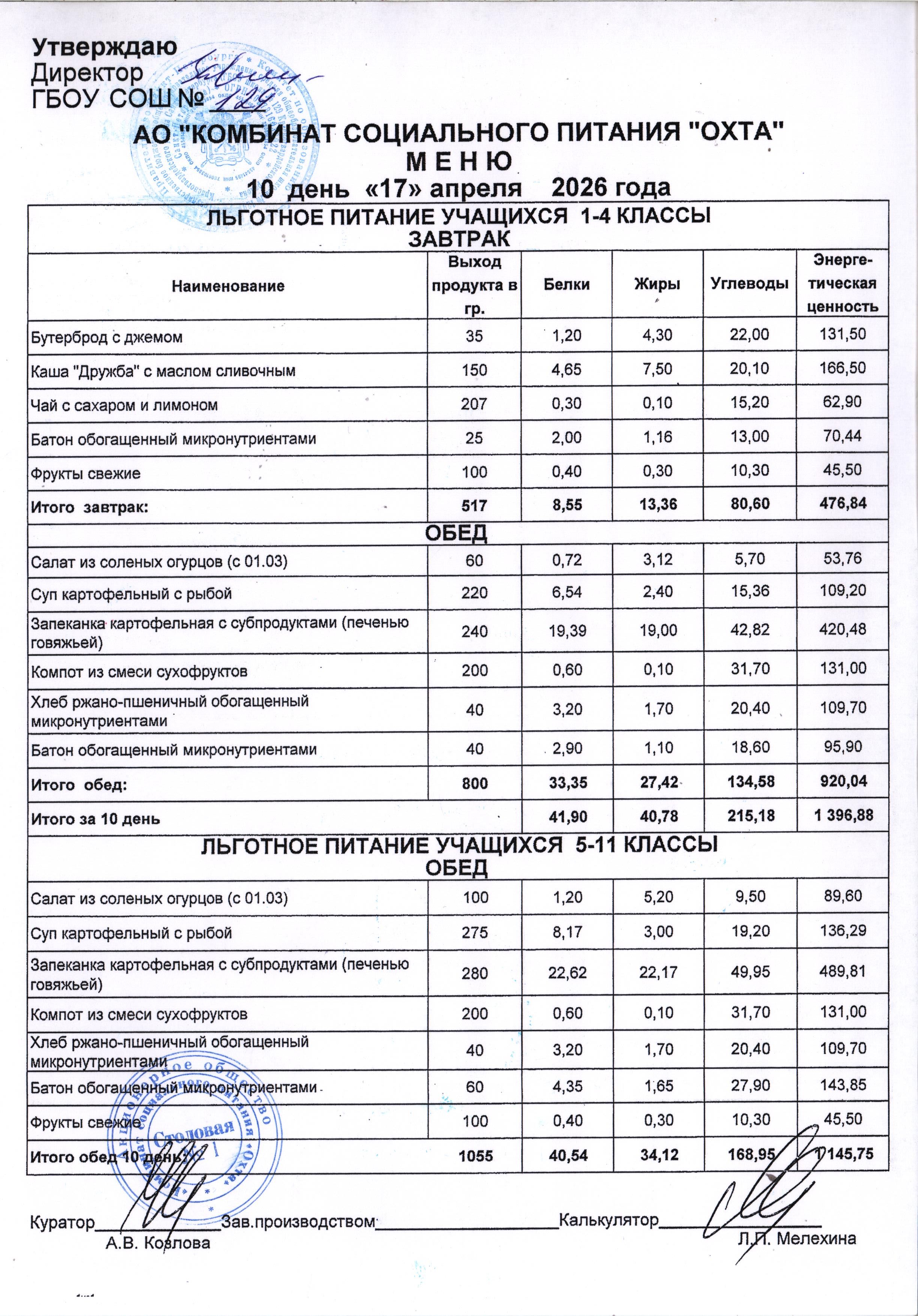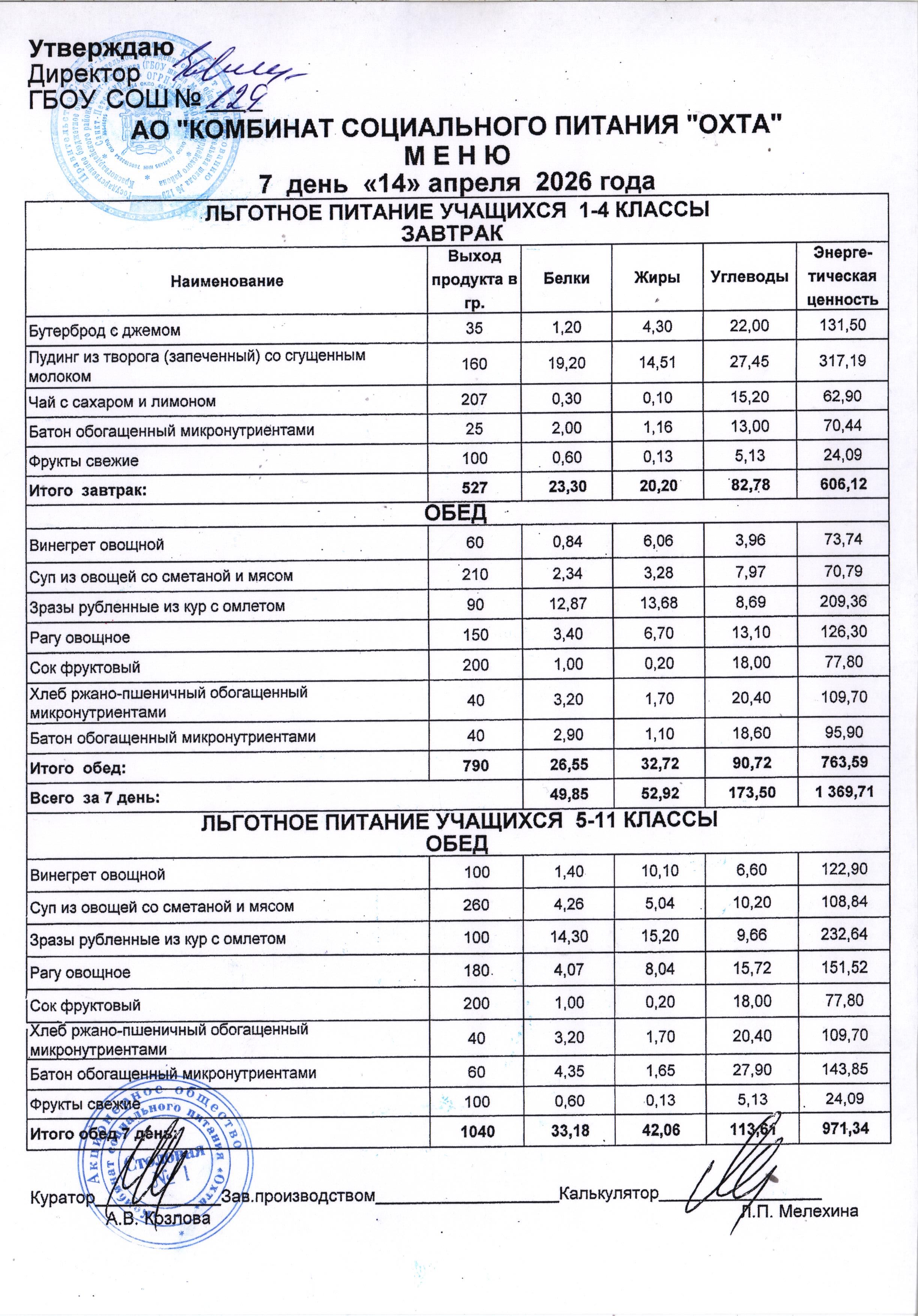 Ответственный за организацию питания в школе №129: Шереметова Ирина Юрьевна (тел. 4175410, часы работы: пн-пт 9-00 до 17-00)
