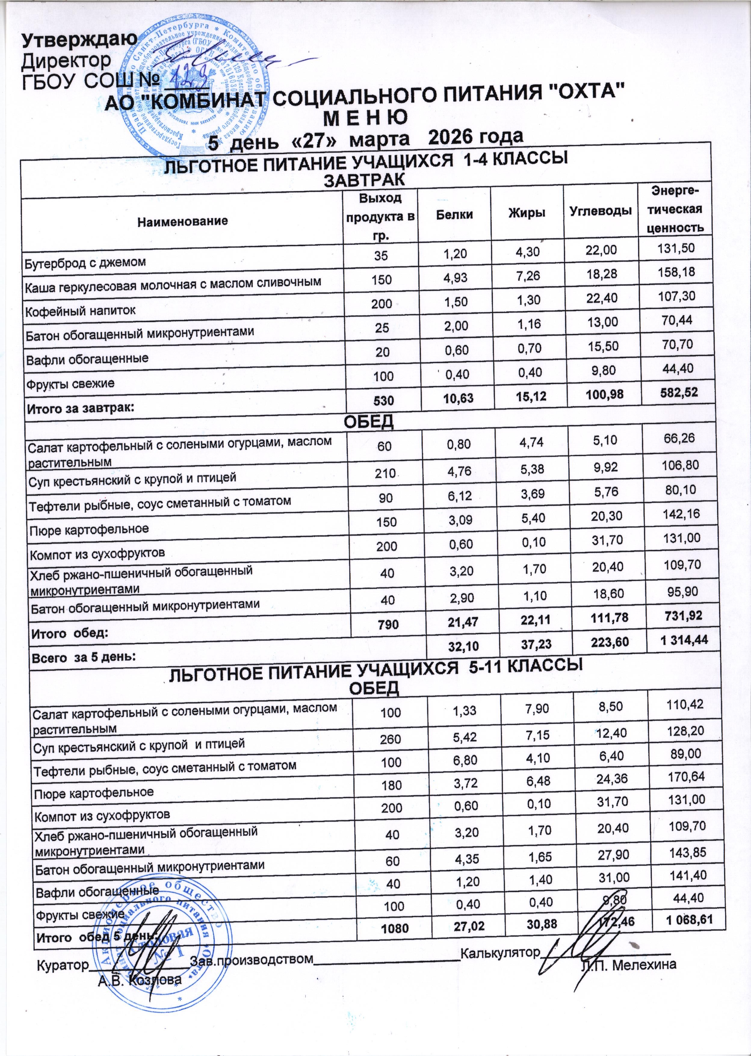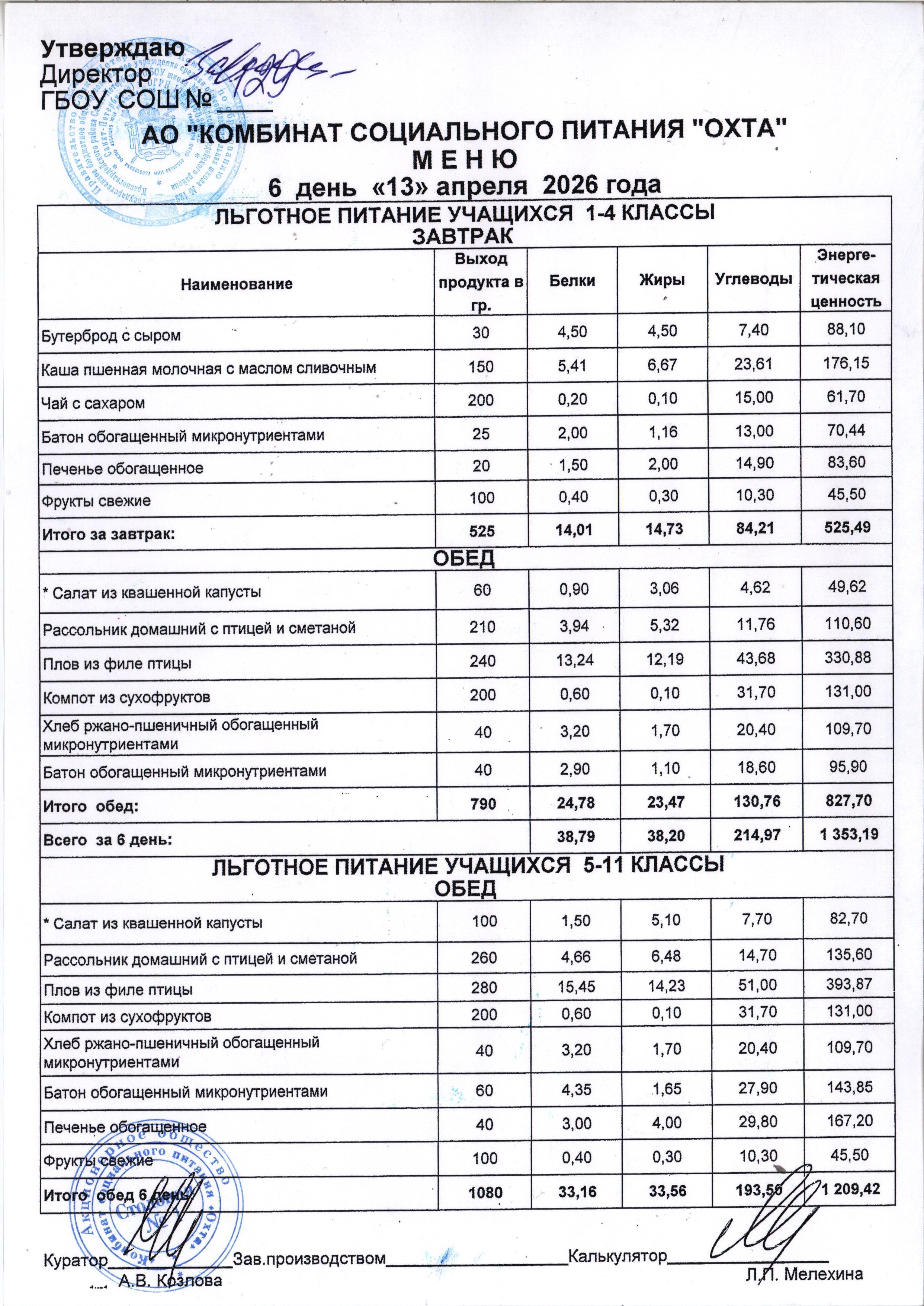 Акт проверки организации питания учащихся в ГБОУ школы №129 от 21.10.2024